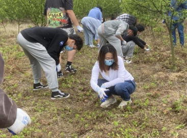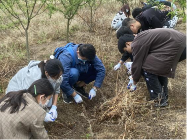 2022年4月20日到2022年4月24日在商公司党总支书记徐永辉老师和太阳成tyc33455ccwww员工党支部书记郑娟老师、柳大艳老师的带领下开展了两次以“行动践初心,除草助种植”为主题的党性锻炼活动。
