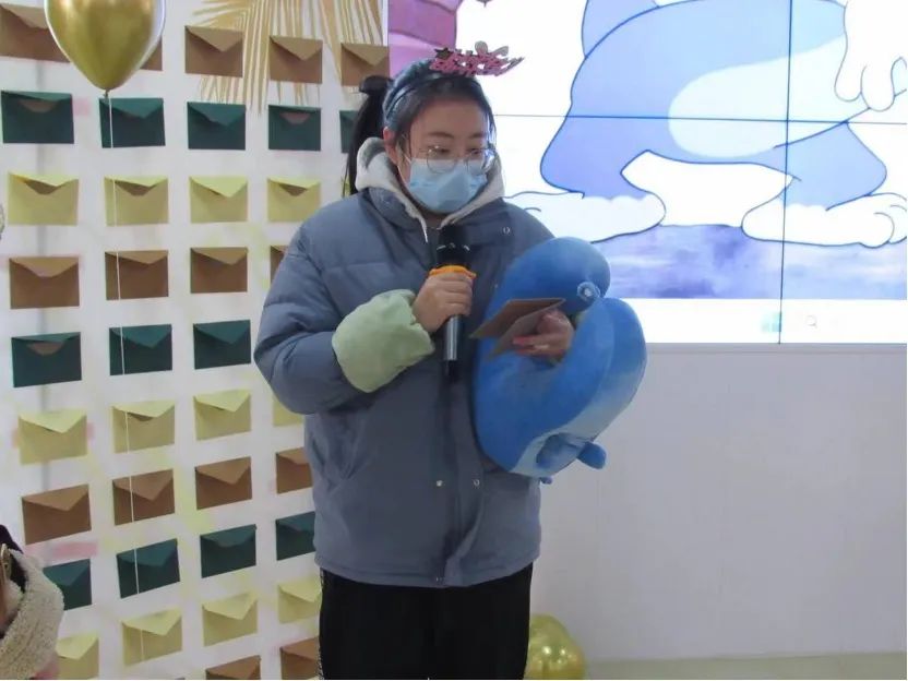 伴随着悦耳的歌声,“击鼓传花”作为破冰游戏登场,老师们激动地期待“花落谁家”。音乐停止的同时,接到玩偶的老师则成为了“幸运嘉宾”被邀请上台,随机抽取同学们写给老师们的祝福卡片,并现场分享给大家。