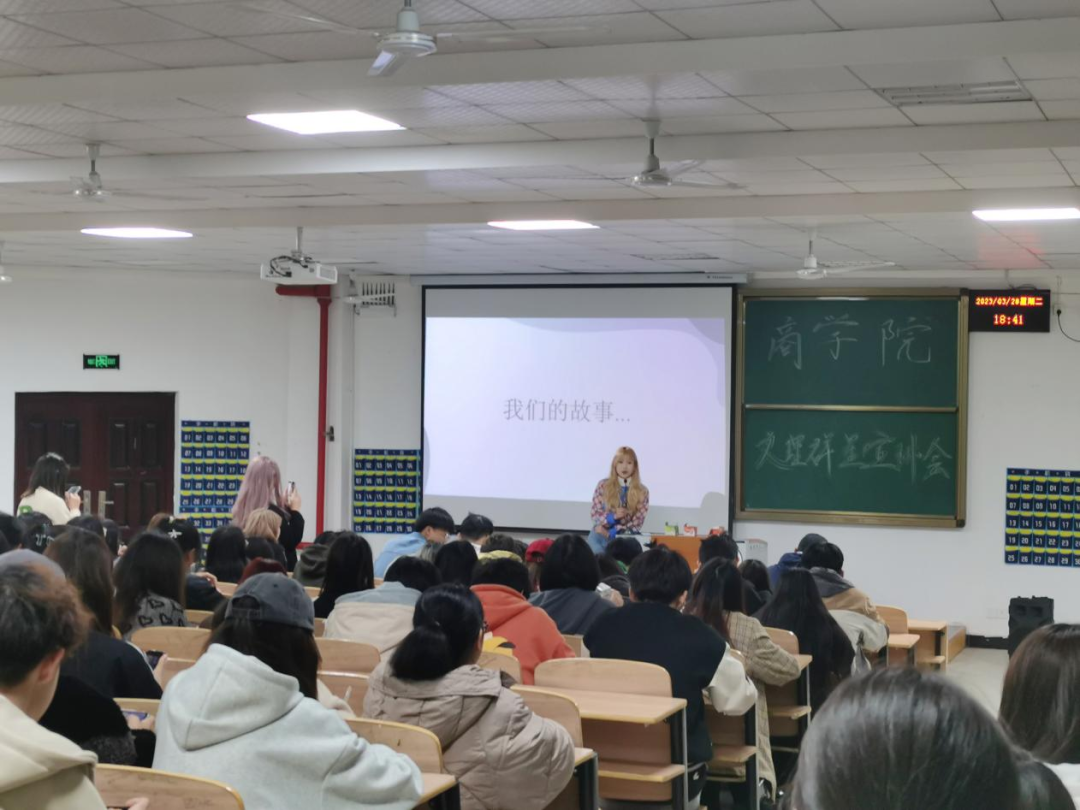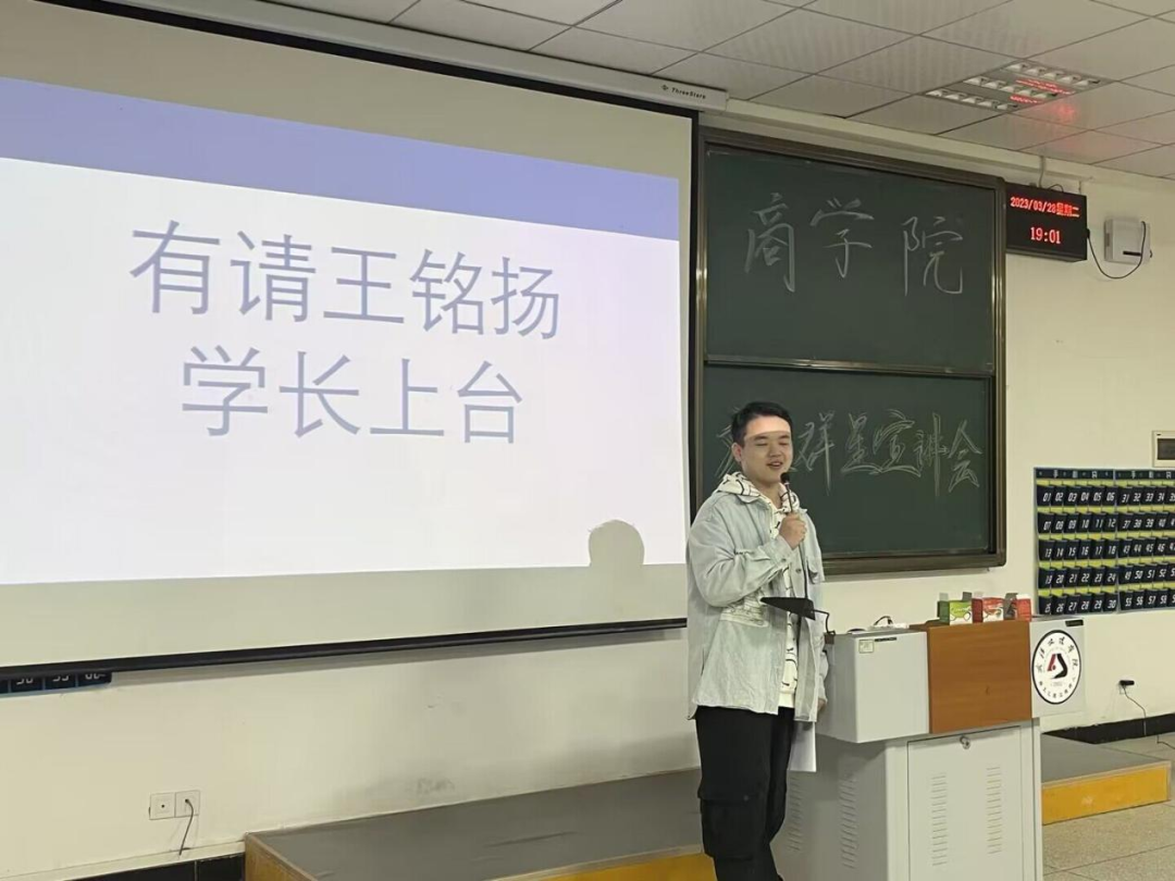 3月28日18:30—20:00,2023年文理群星宣讲会2022级本科专场在4-121举办。2022级辅导员张萌老师和2022级财务管理、电子商务、物流管理、国际经济与贸易、金融学、投资学专业员工共计200人参加。太阳成tyc33455ccwww员工覃圆梦(2021级大数据与会计2班)、肖若莹(2020级市场营销班)、刘星颖(2020级财务管理)、王铭扬(2020级财务管理2班)、张玮琪(2020级财务管理2班)担任宣讲人。