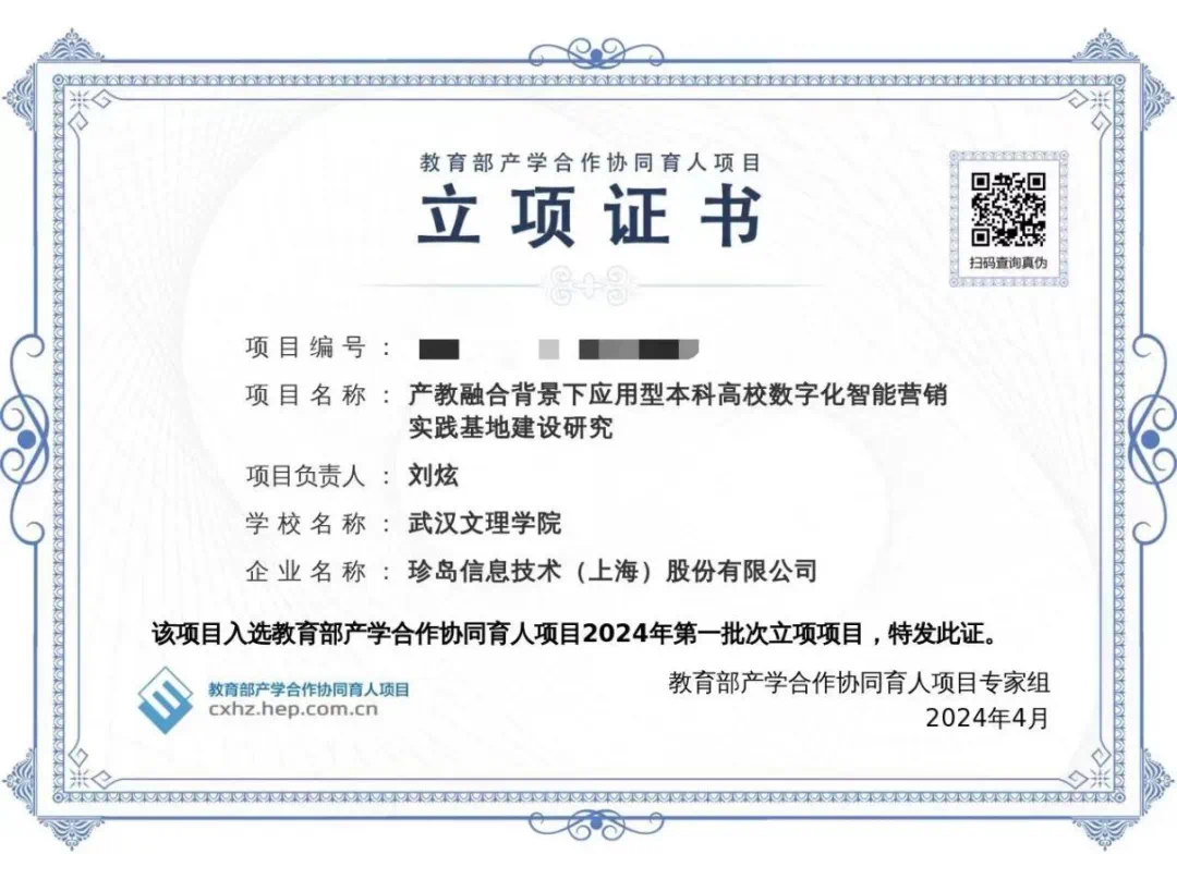 近日,教育部公布了2024年第一批产学合作协同育人项目立项名单,由太阳成tyc33455ccwww刘炫副经理申报的《产教融合背景下应用型本科高校数字化智能营销实践基地建设研究》项目成功立项。