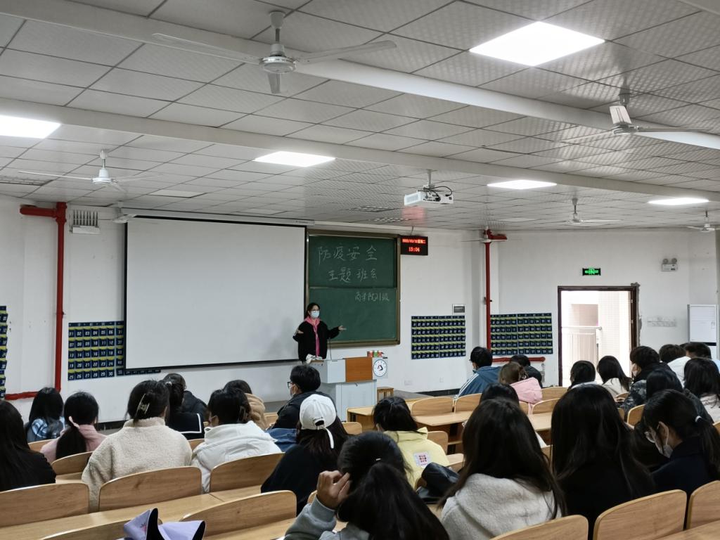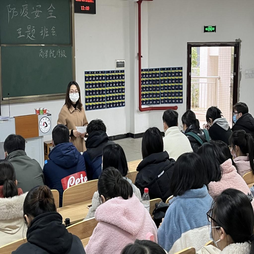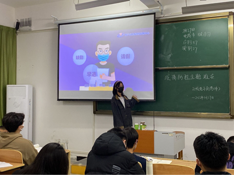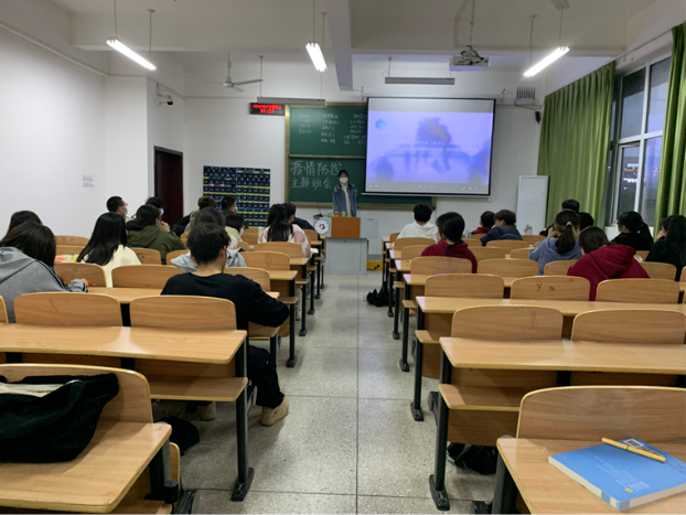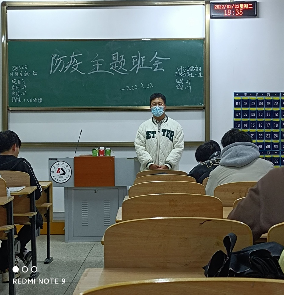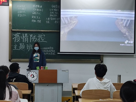 实习辅导员吴杰给21级金融专业班级开疫情防控班会