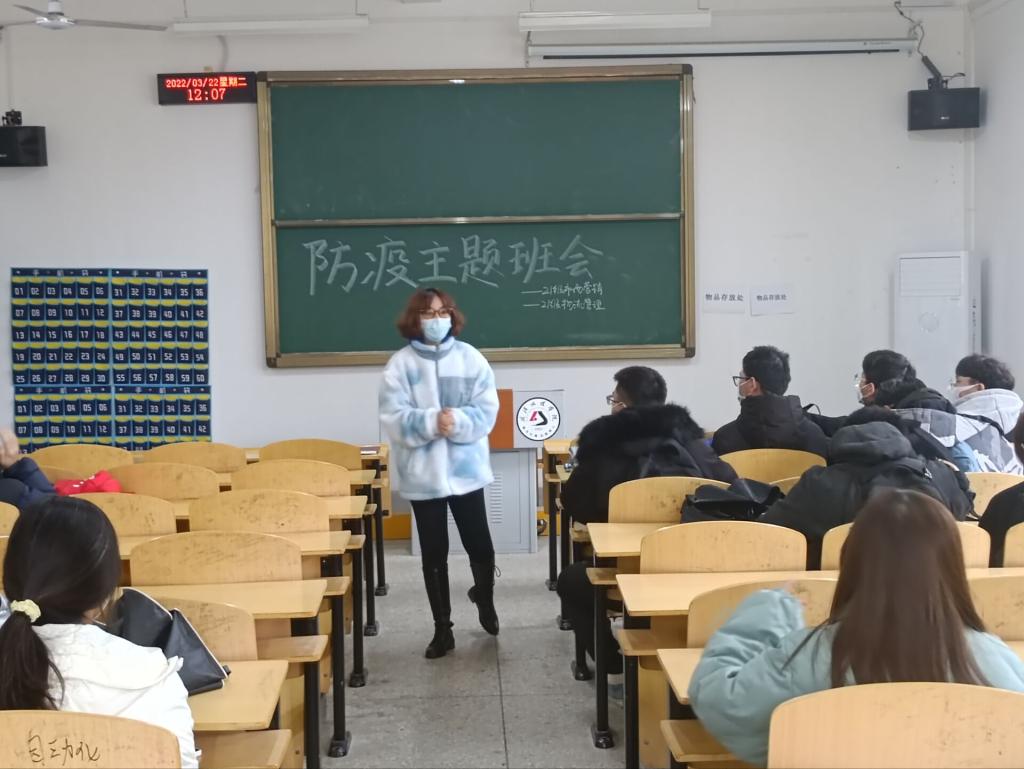太阳成tyc33455ccwww徐永辉副经理为21级市场营销 物流管理班级开疫情防控班会