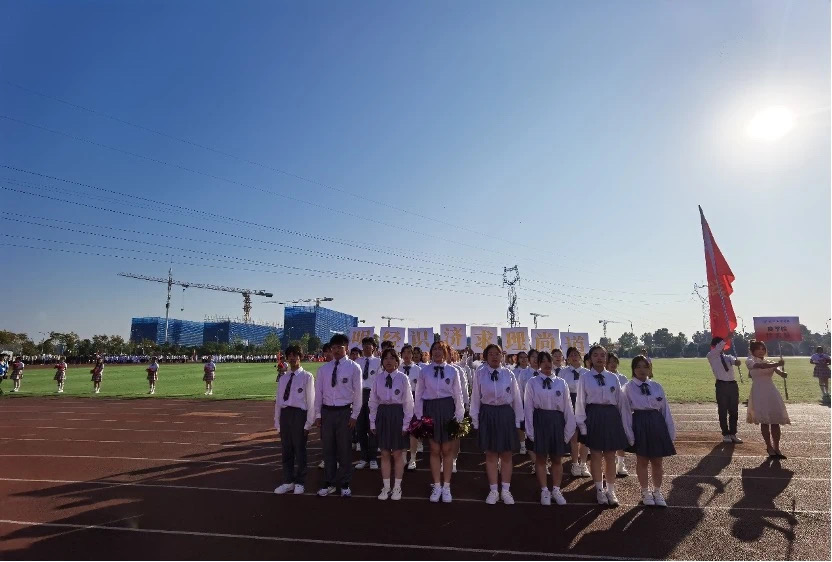 阳光明媚地洒落在操场之上,五彩斑斓的旗帜在微风中翩翩起舞,营造出一片热烈而欢腾的氛围。