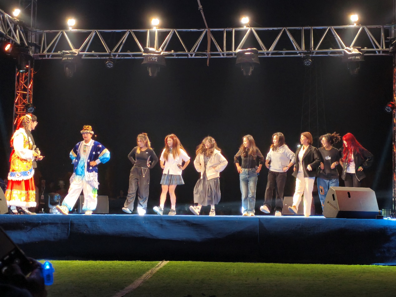 舞台上,同学们身着各民族服饰。汉族的传统服饰诠释着典雅与端庄、藏族的藏袍随着稳健的步伐展现出高原的豪迈、苗族的银饰随着灵动的舞步闪耀出深山的璀璨等无不凸显着各族特色文化。他们在舞台上欢歌笑语,用歌声传递着各民族的情感。那辽阔的声音如同天空般宽广,唱出对生活的热爱。每一首歌都是民族文化的瑰宝,每一个表演都是民族大交融的盛景。