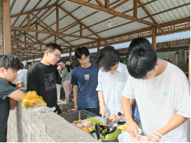 在土灶炊事区,员工们围坐土灶旁,从生火添柴到掌勺烹饪,烟熏火燎间完成“舌尖上的劳动课”。同学们不禁感慨感慨:“土灶饭的香气,是书本上学不到的生活智慧。”