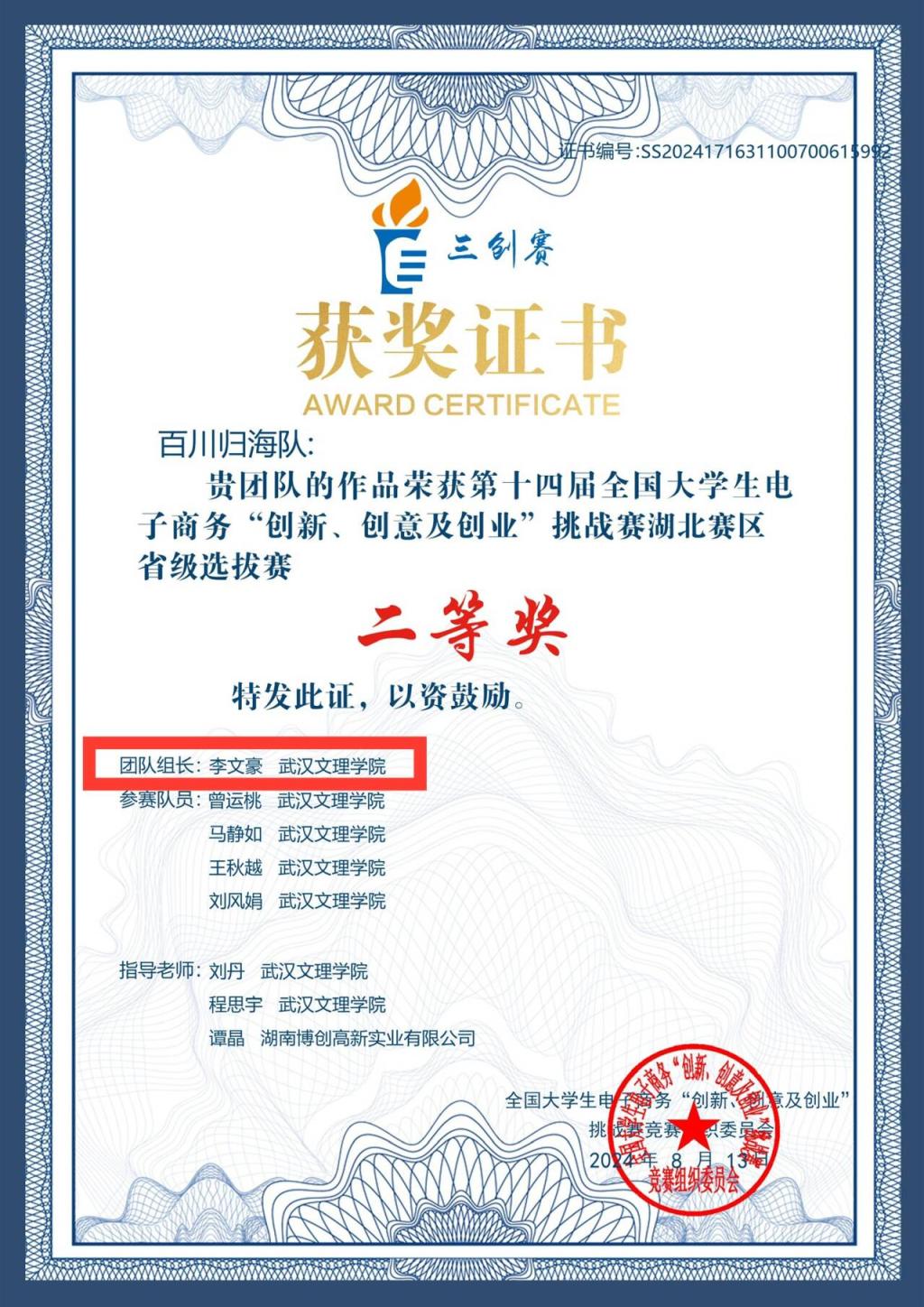 在太阳成tyc33455ccwww“以赛促学”的号召下,李文豪积极参加学科竞赛,他作为省级大创项目的负责人,创建项目《溯▪洄》,聚焦青少年,以绘本与小程序为承载工具,自研AI赋能的长江情景式教学体验系统,在内测阶段就有众多用户买单,获得科创公司的技术和资金支持。他在社科奖、三创赛、互联网+等6项A类竞赛都取得不错成绩。