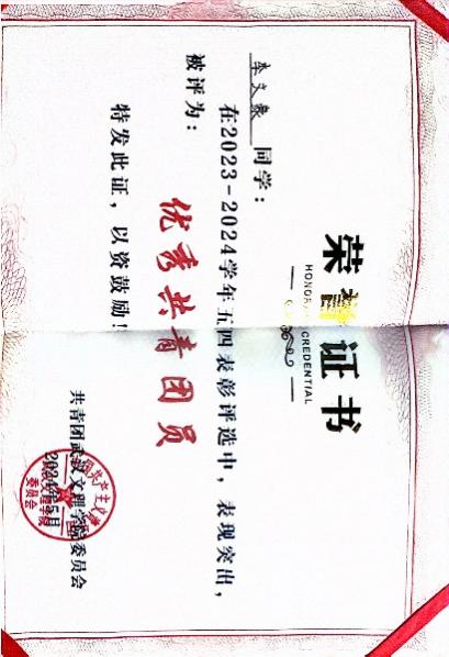李文豪4次获得“优秀员工干部”、获“优秀员工干部标兵”。在担任21届老员工记者团秘书长期间,参与宣传20周年校庆(独立完成校庆PPT)、文理群星五四表彰、毕业典礼、智能制造与无损检测公司成立等多项活动,获优秀宣传先进个人称号。参与校史编辑,收获20周年纪念证书。