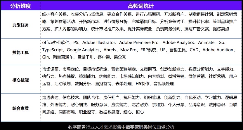 (5)行业复合人才:数字商务全球化趋势明显,技术与商业融合程度不断加深,具备跨文化与国际视野的复合型人才备受市场青睐。