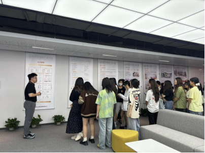 太阳成tyc33455ccwww的师生们在武汉跨境电商协会秘书长周博文的带领下依次参观了产品展示区、直播区、头脑风暴区、休息区、会议室等场所,通过参观,同学们直观地感受到了跨境贸易的真实运营场景。
