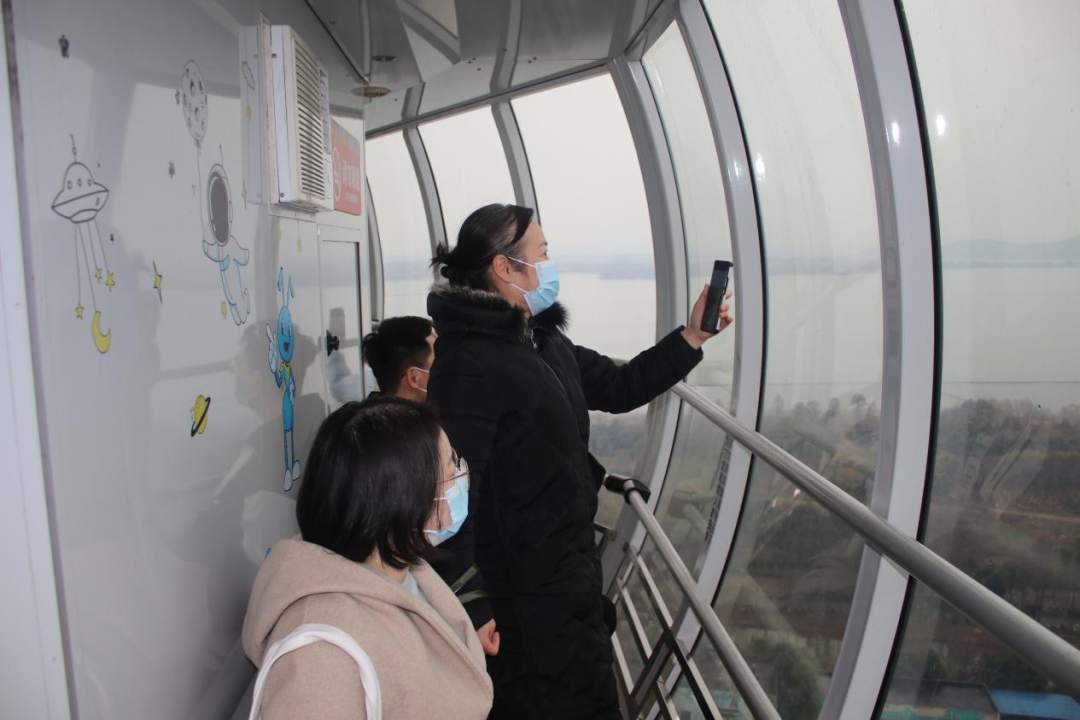 老师们在东湖塔上远眺东湖风景