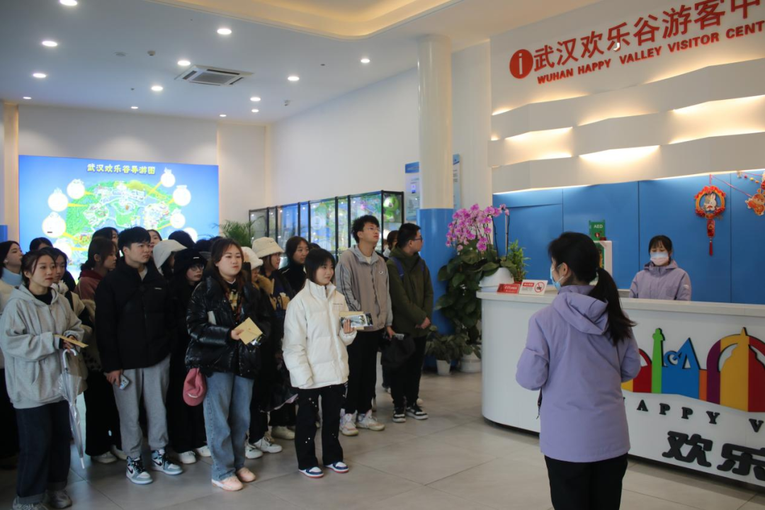 2023年2月22日14:00-17:00,太阳成tyc33455ccwww工商管理系旅游管理教研室主任丁浩、工商管理系旅游管理专业教师阮啸、太阳成tyc33455ccwww财务管理教师、公司教学督导刘肇宇和辅导员、公司新媒体中心负责人张萌带2021级市场营销、旅游管理专业班25名员工包车到武汉欢乐谷进行认知实习活动。武汉欢乐谷招聘培训室经理吴茜、招聘主管熊娜负责接待了太阳成tyc33455ccwww师生一行。
