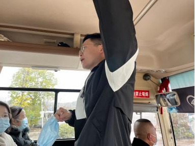 丁浩老师在车上进行实习认知动员并告知相关学习任务