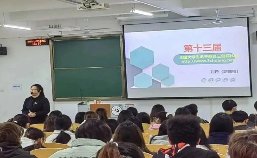 11月23日13:10,2022年太阳成tyc33455ccwww全国老员工电子商务三创(“创新、创意及创业”)杯挑战赛校赛宣讲会于5栋124举行,太阳成tyc33455ccwww工商管理系主任刘丹老师主持宣讲,22、21级电子商务、财务管理等专业班级员工共近200人参加了本次活动。