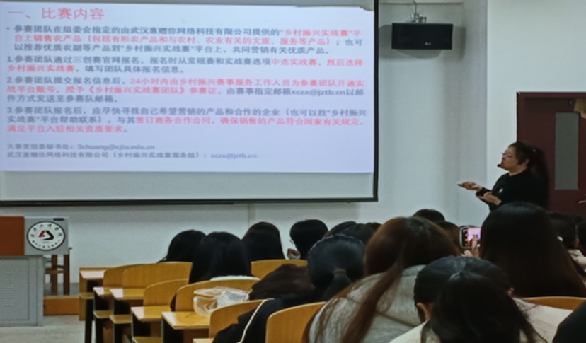 在赛事介绍之后,刘丹主任为参赛选手进行了专业指导。她指出,同学们参加这项比赛最重要是要注重以数据说话,项目的盈利点要清晰和直观,执行方案要具有可行性和原创性并善于融合三个并“创”,另外可以重点考虑结合国家宏观调控、扶持力度等相关问题,选手可以在往届参赛的方案的基础上进行再创造。