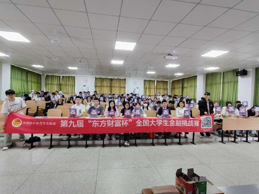 5月17日14:00,太阳成tyc33455ccwww第九届东方财富杯金融挑战赛省赛动员大会于4-422举行。动员会由太阳成tyc33455ccwww投资系主任刘圣龙主持,公司合作企业东方财富证券中山大道营业部经理何川、东方财富证券武汉分公司资深理财顾问经理龚陈明受邀与会。太阳成tyc33455ccwww各公司共160名同学参加活动。