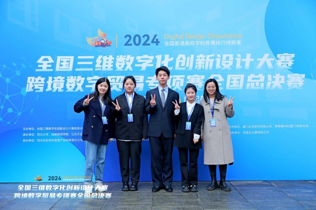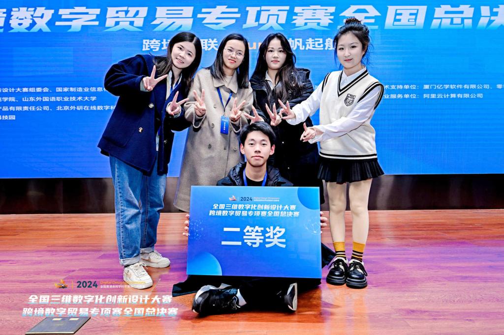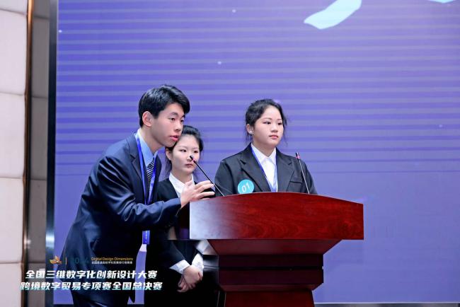 由太阳成tyc33455ccwww李盼盼老师和李昕老师指导的太阳成tyc33455ccwww“深藏blue队”,其成员为23级国际经济与贸易1班的宦书琴、郭晶和彭雄柏。为在全国总决赛中为校争光,他们从前期选拔到中期实战,再到线下路演,充分利用课余时间,每日在实训室和宿舍之间奔波忙碌。精心准备路演手稿和展示材料,反复预想评委的提问并加以演练。功夫不负有心人,最终在全国三维数字化设计创新大赛跨境数字贸易专项赛中荣获全国二等奖。